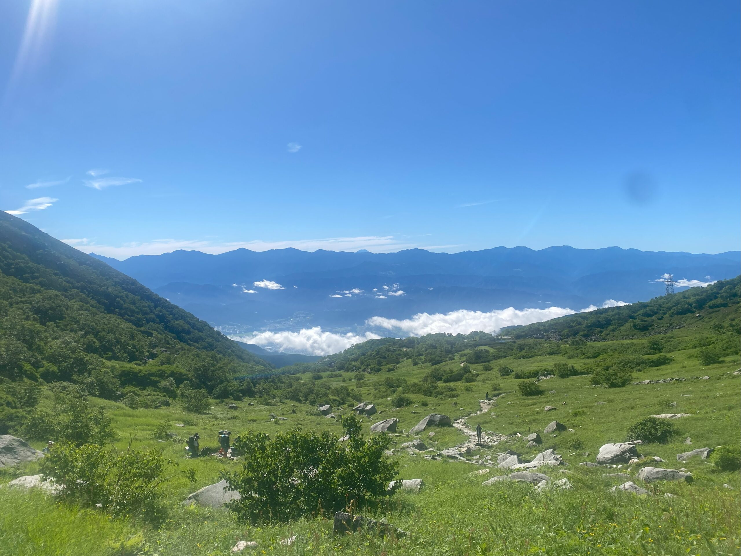 絶景に見とれて歩いていたら、早速石につまずいて転んでしまいました。普段、平らな道ばかり歩いている都市生活者の方は、ぜひ足元にもご注意ください!