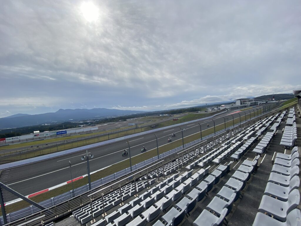 本物のレースを間近で観戦できるのが富士スピードウェイ。この日はバイクのレースが開催されていました。いったい何台いるの?と驚くほどの台数が競っていました。