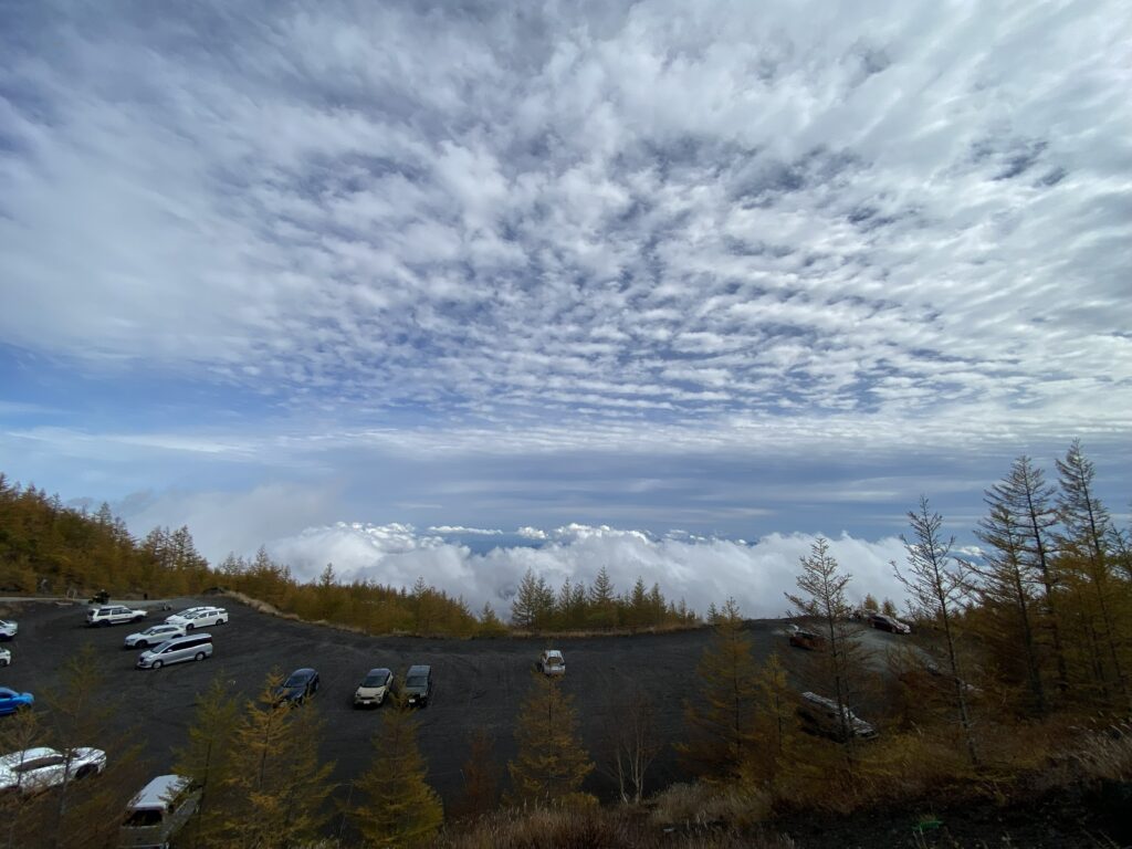 車で富士山の須走口五合目まで登れば、標高2000メートルからの絶景が広がります。雲海と、天気が良ければ遠くの景色や紅葉、壮大な富士山の眺望が楽しめます。通行規制があるので五合目まで自家用車で行かれるのは夏前後の限られた期間だけです。